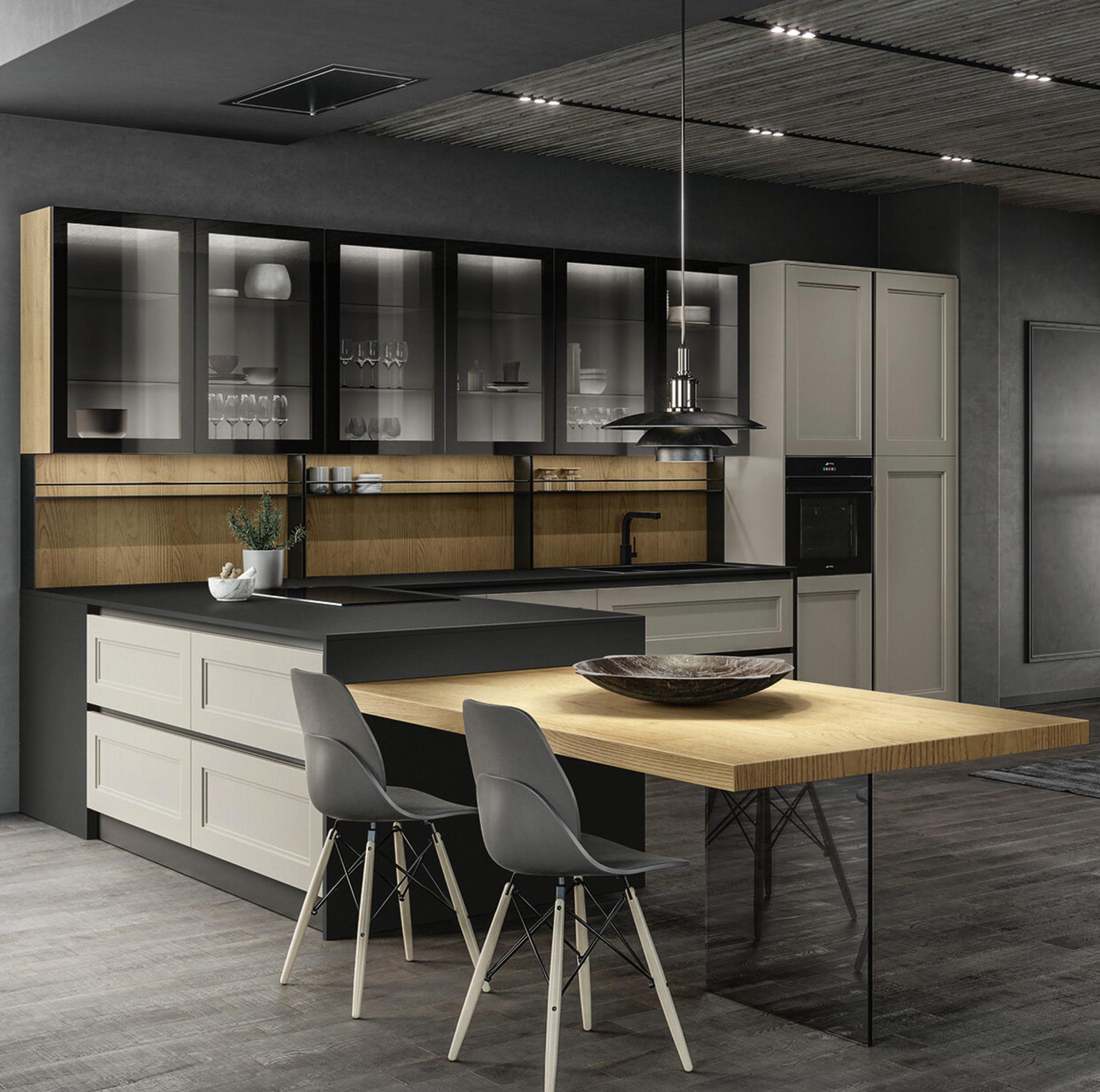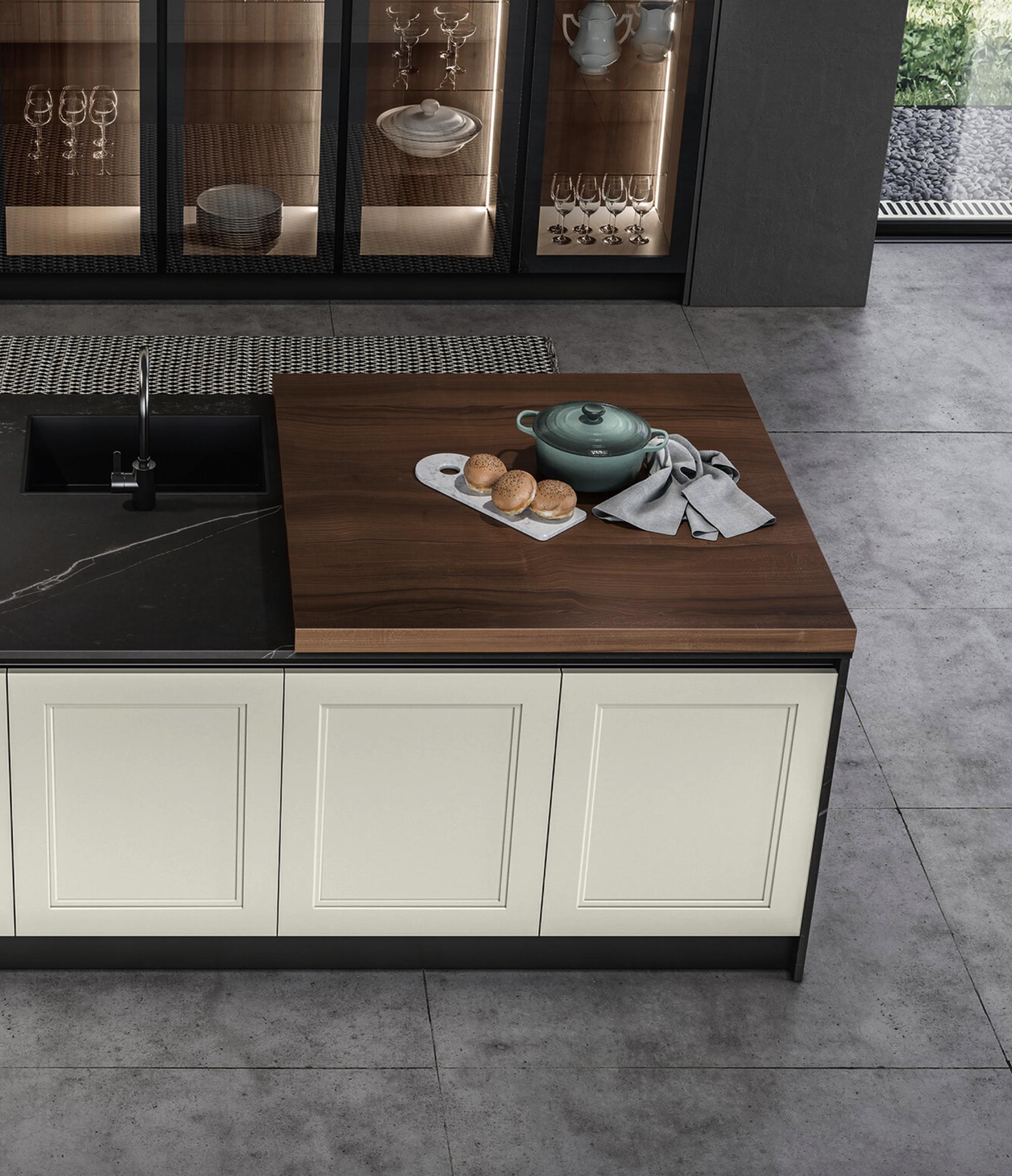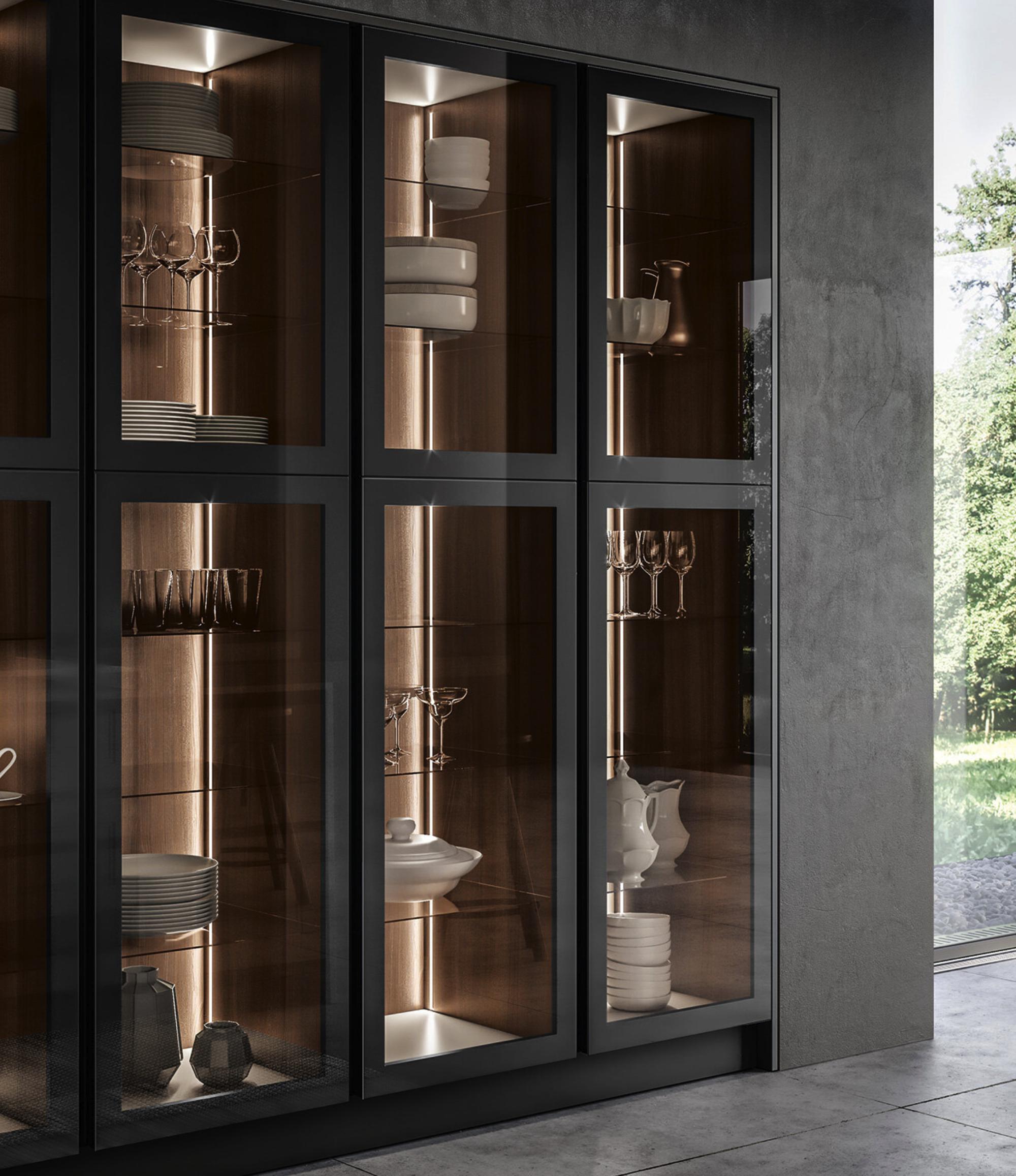 L’anta a telaio con cornice marcata da due bassorilievi successivi di Meg definisce una cucina contemporanea che fa sempre dell’essere elegante la sua caratteristica. Per accentuare questo aspetto, è disponibile anche nella versione anta a vetro con lo stesso telaio in massello, unito al vetro trasparente o flute, con effetto tridimensionale cannettato. Grazie alla versatilità dei modelli Arredo3, puoi decidere di usare anche un’altra anta a vetro a contrasto, più tecnica o semplice, scegliendo fra le opzioni Standard, Teca e Vogue, caratterizzata da un’estetica estremamente raffinata e da cerniere a scomparsa. Sono tutte in alluminio e vetro. Per chi desidera una cucina elegante, contemporanea e ricercata.