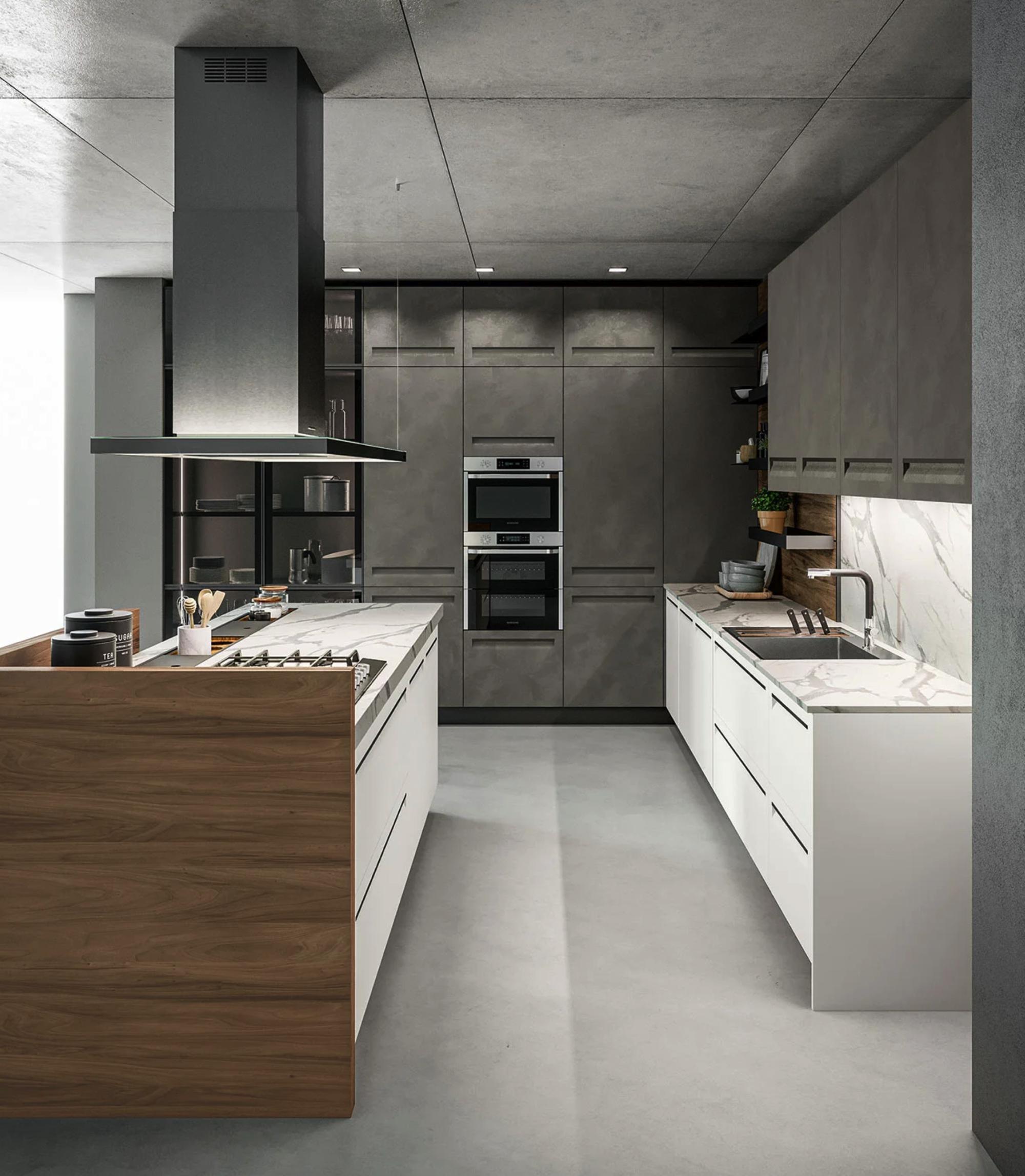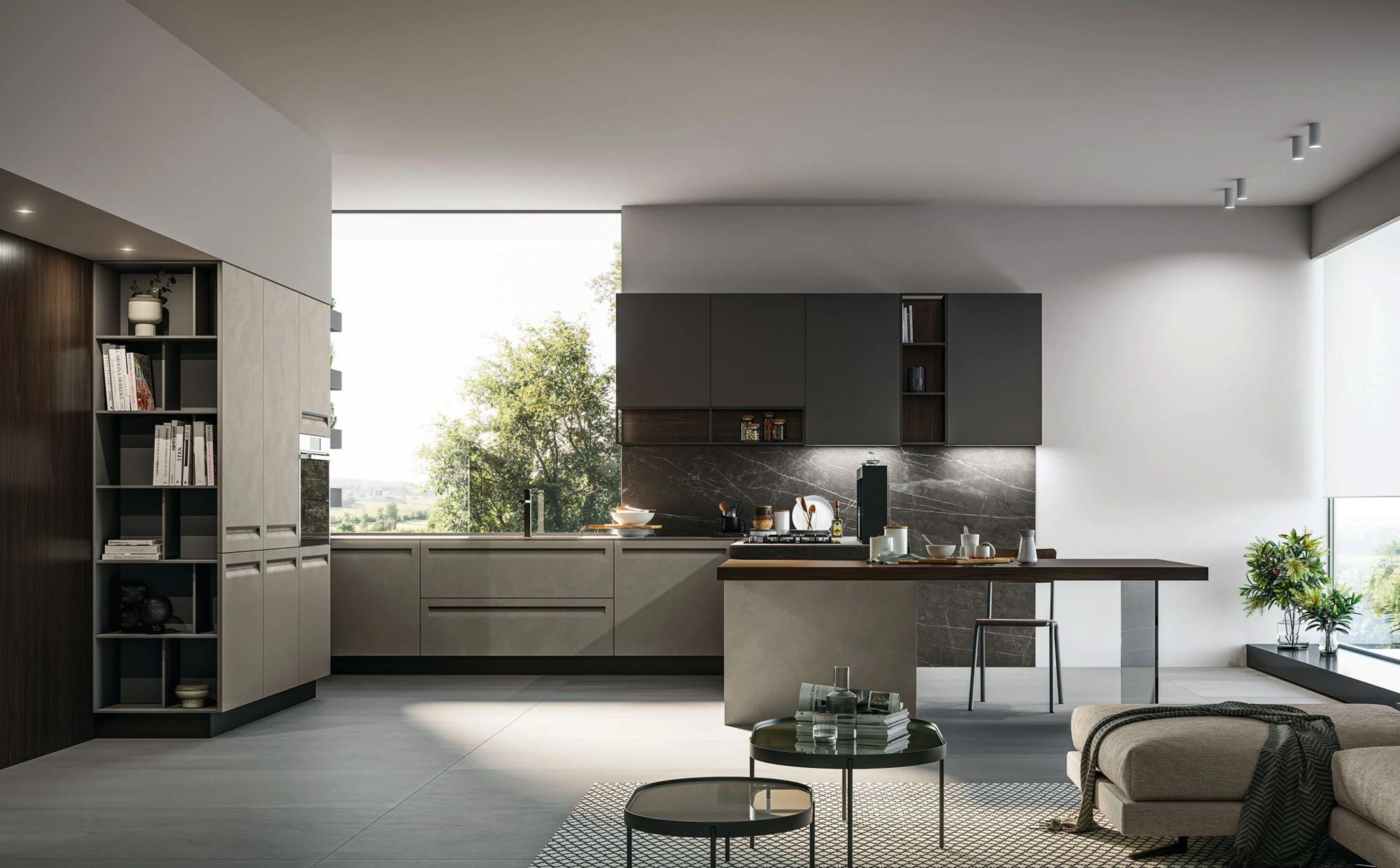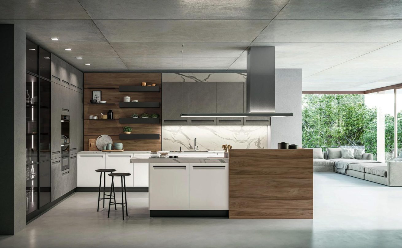 I materiali selezionati per Tekna puntano alla durata. Mixano il PET in diverse finiture effetto resina, il PET riciclato, in sintonia con l’allestimento Gaia, applicato a un pannello in particelle di legno 100% riciclato o MDF, e i moderni laminati con le loro texture superficiali di pregevole qualità: riproducono legni e pietre ma sono molto più comodi da usare e facili da pulire. Facilità anche a livello strutturale, con il Sistema Flex. Raggruppa alcuni modelli, fra cui Tekna, e permette loro di mescolare gli elementi distintivi in un’ampia libertà compositiva e di personalizzazione. Il risultato è la cucina che sognavi. Prende le mosse dal modello Tekna e si sviluppa in direzione dei tuoi desideri.