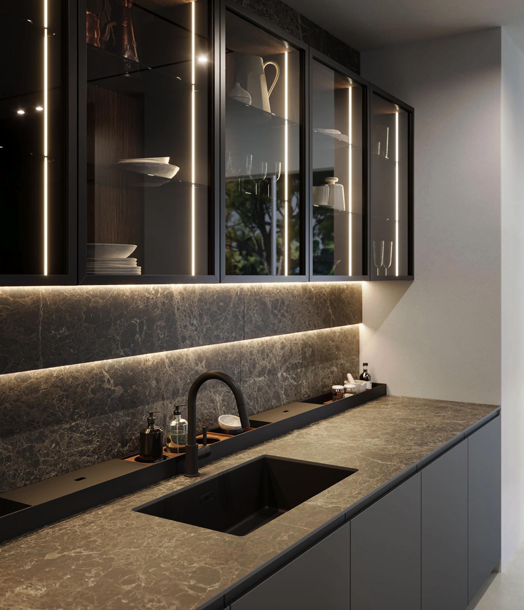 Lo spirito contemporaneo, versatile e funzionale della cucina moderna Wega di Arredo3 brilla grazie alla linearità dell’anta priva di maniglie, con presa integrata nel pannello, recupero vintage di un’ispirazione anni Settanta. Il suo design pulito assume carattere e diventa brioso con i tagli orizzontali delineati dal sistema a presa integrata, perfetti per creare giochi di rette lungo gli elementi delle configurazioni. Wega si presta bene per spazi che uniscono l’operatività della cucina e la calma del living, in soluzioni open space da personalizzare con uno stile uniforme grazie all’aiuto degli interior designer Arredo3. Per chi possiede uno spirito contemporaneo e conviviale.